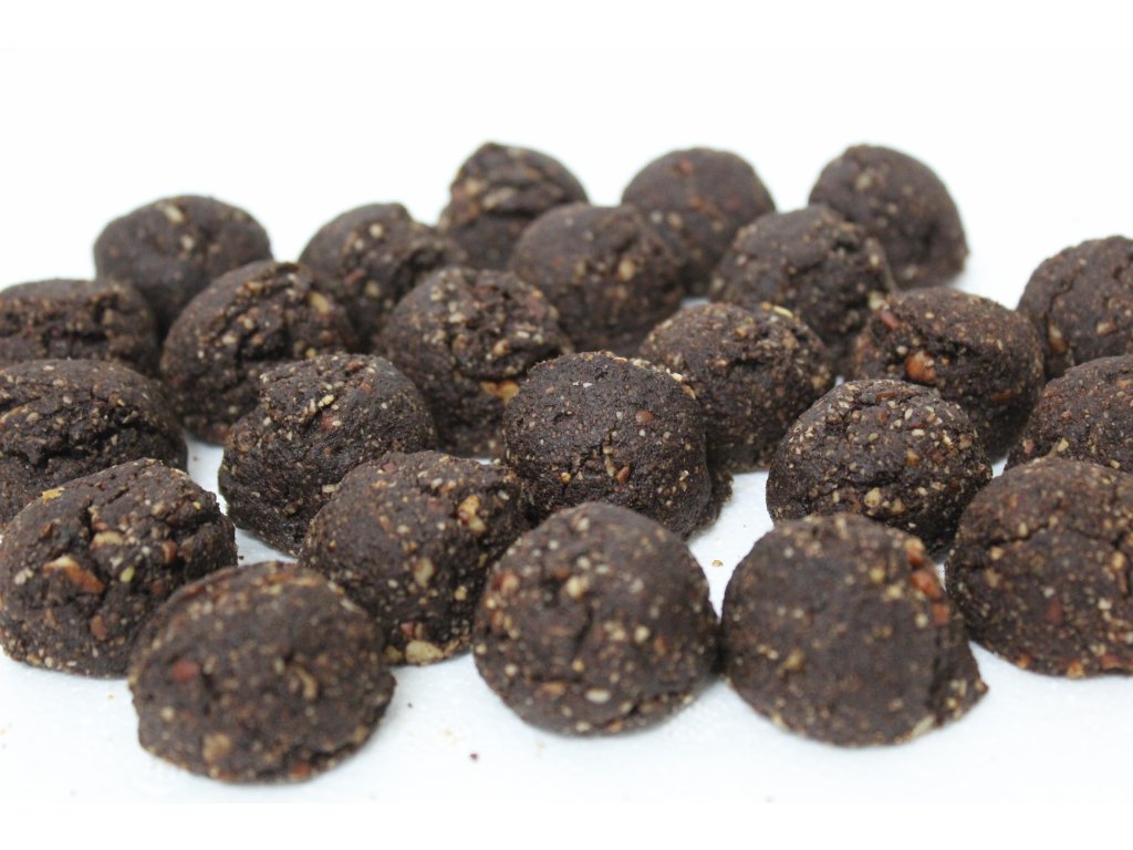 - pekany, mandle, BIO kokosová mouka, BIO nealkalizované kakao,, čekankový sirup, soda