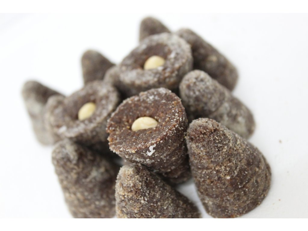 100g obsahuje: 664 kcal - S 18 - B 13 - T 66 - V 14 - LC - DIA - VEGAN - Skořicovo-mandlové kloboučky