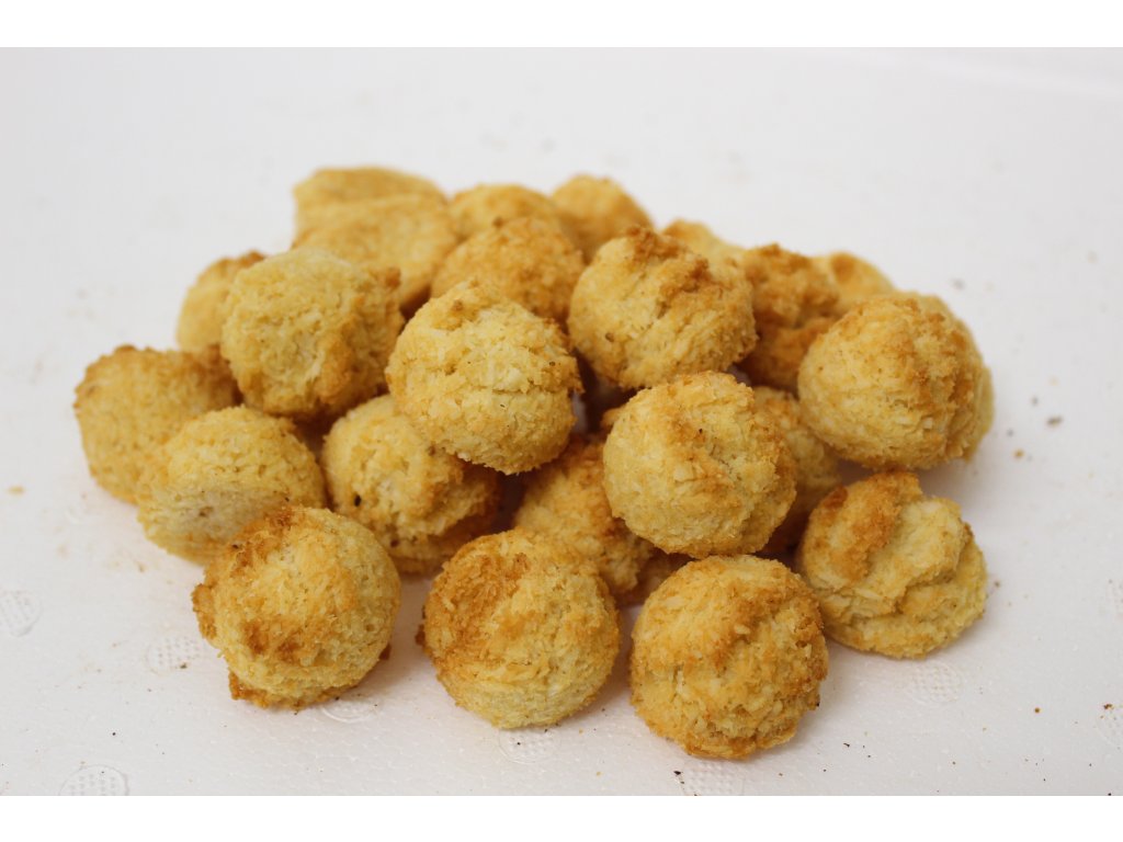 - mandle, BO kokosová mouka, med, BIO kokosový olej, Ghí, citronová kůra, brusinky, jahody, višně - Kokosové kuličky - nepečené. - SCD