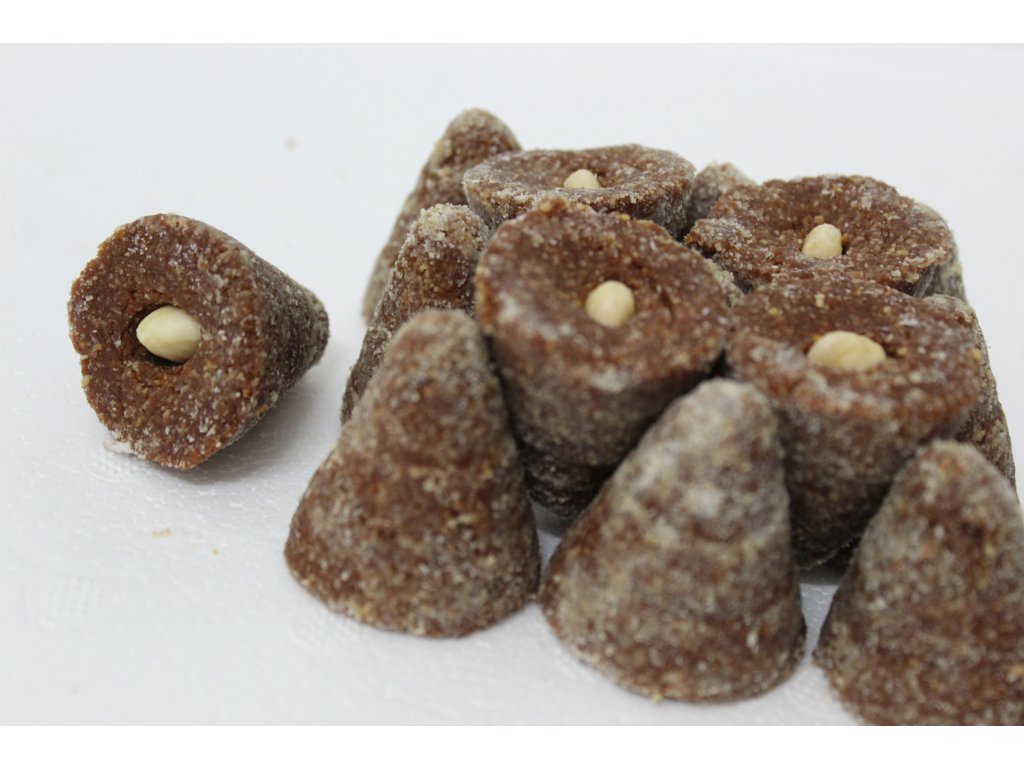 - mandle, BIO kokosová mouka, med, ghí, BIO kokosový olej, skořice, BIO sirup z čerstvých datlí - Kešu kuličky - nepečené. - SCD