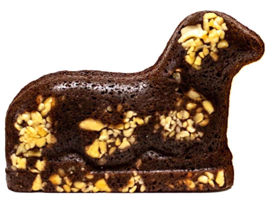 Mini Mandlový Beránek (bez lepku, mléka a cukru): mandlová mouka, pražené mandle natural, vejce z volného chovu,, med, BIO jablko, soda